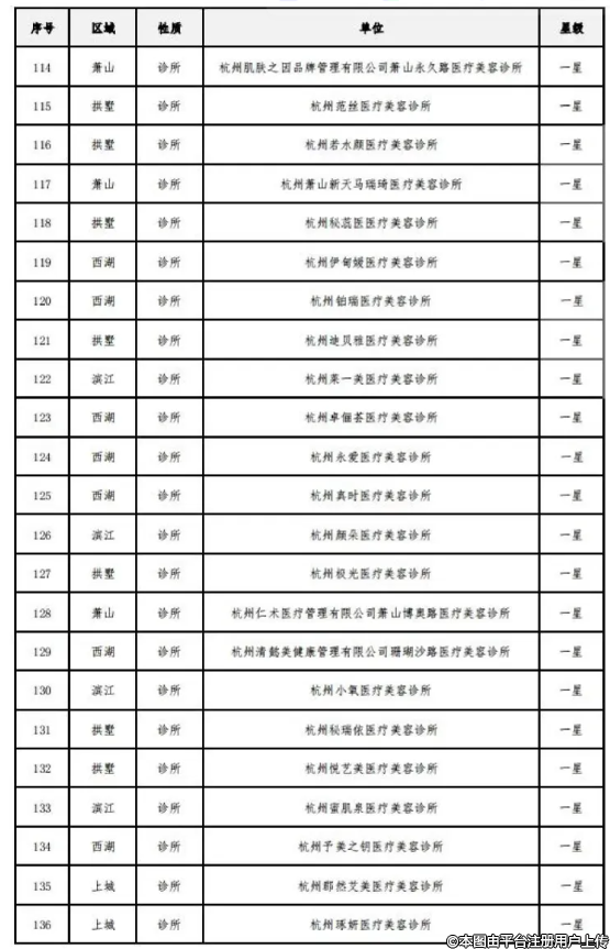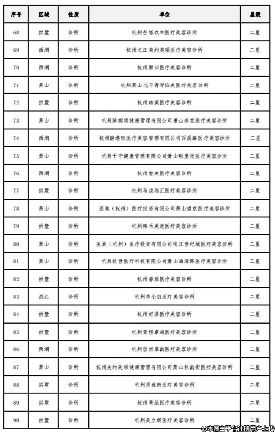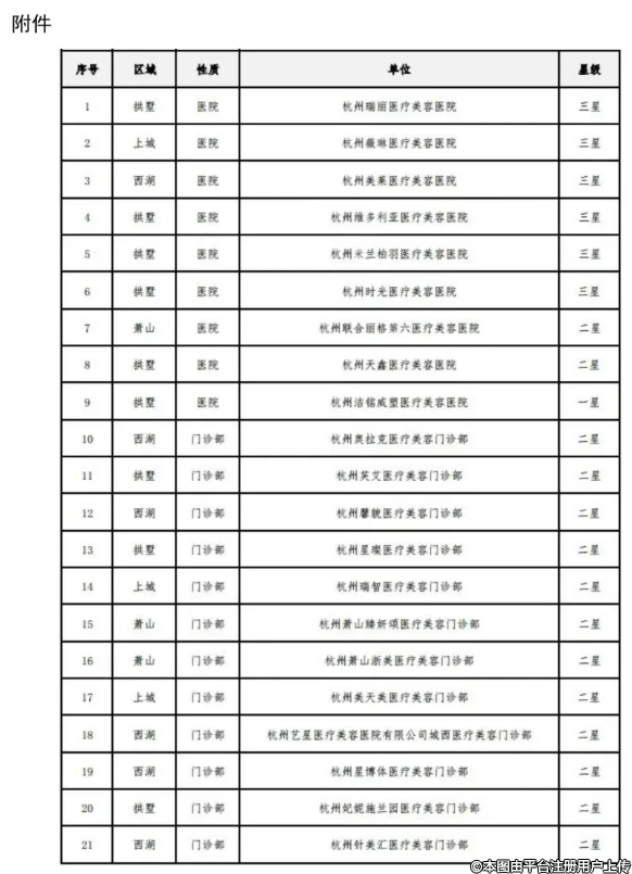 附件:《杭州市醫(yī)療美容機構(gòu)規(guī)范化星級評價結(jié)果》