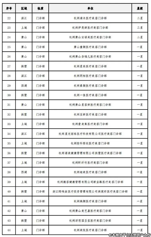 關(guān)于公布2024年杭州市醫(yī)療美容機構(gòu)規(guī)范化星級評價結(jié)果的通知