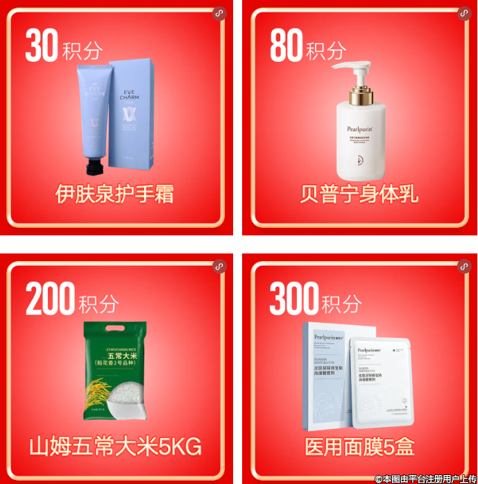 30積分起就能兌換身體乳、潤百顏次拋精華