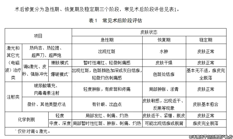 規(guī)范中明確規(guī)定了皮膚醫(yī)療美容術(shù)后修復(fù)的總體要求、適用范圍和禁忌、修復(fù)階段及用品、修復(fù)評(píng)估、操作規(guī)范以及并發(fā)癥處理等多方面內(nèi)容。尤其強(qiáng)調(diào)了術(shù)后修復(fù)的關(guān)鍵重要性,并提出了一系列核心原則。