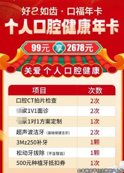 個人口腔健康年卡99元享2678元