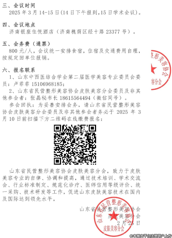 邀請(qǐng)函丨山東省皮膚美容項(xiàng)目分級(jí)管理交流會(huì)暨山東中西醫(yī)結(jié)合學(xué)會(huì)醫(yī)學(xué)美容專(zhuān)業(yè)委員會(huì)2025年學(xué)術(shù)年會(huì)