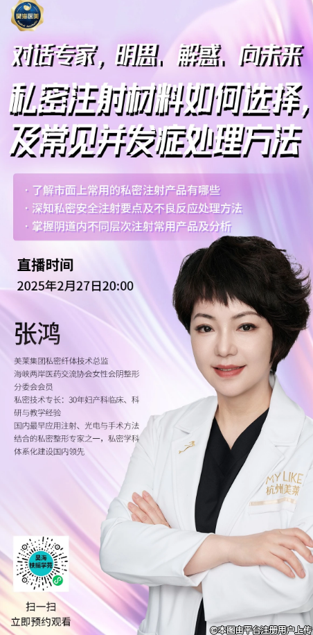本次直播特邀張鴻教授帶來私密注射常見的注射材料及其特點和不良反應(yīng)處理辦法。深度探討如何避免陰道注射引起的嚴重并發(fā)癥。進一步研究私密注射材料治療生殖器整形和保養(yǎng)的方法,并規(guī)范操作,使更多的求美者受益。