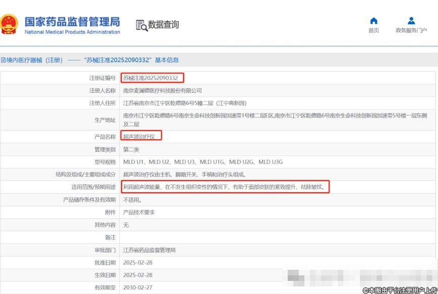麥瀾德「面部抗衰」醫(yī)美適應(yīng)癥「超聲治療儀」獲批