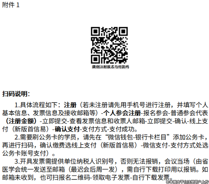 1.微創(chuàng)注射(第Ⅳ期)為1800元/項/人,注射美容實操培訓需用到特殊耗材及模特等,需另外加收200元/人。費用含會議資料、培訓證書及午餐。請掃描下方二維碼(具體流程詳見附件1)報名及繳費。其他美容系列培訓提前繳費有優(yōu)惠(具體詳見附件2)。