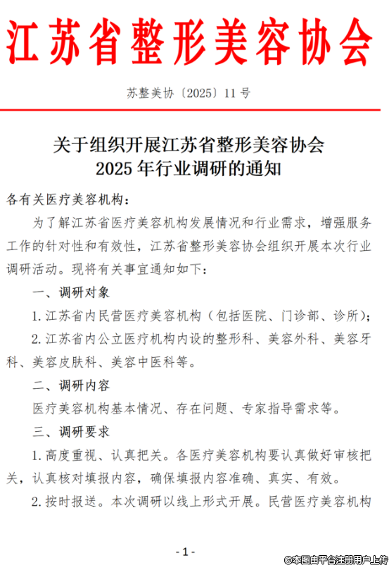 關(guān)于組織開展江蘇省整形美容協(xié)會2025年行業(yè)調(diào)研的通知