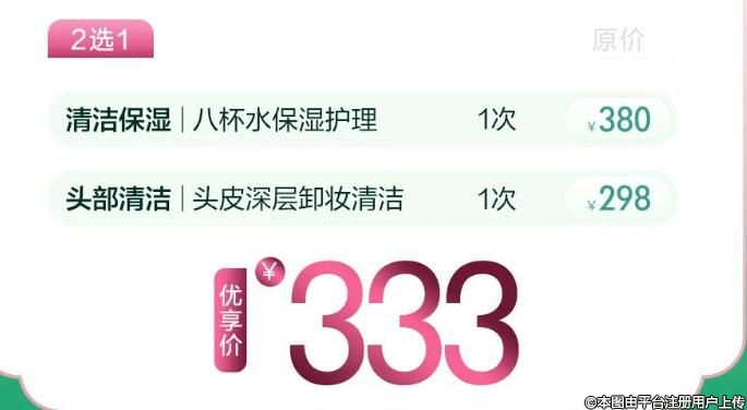 福利價333元=2個高配項(xiàng)目+1次保濕護(hù)理
