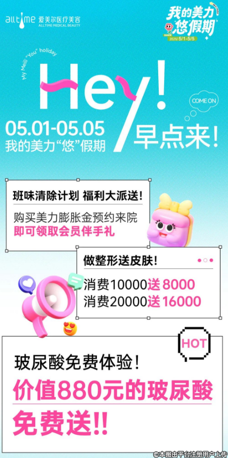 體驗結(jié)束后,只需拍攝 3 張素顏對比照 (面部可打碼,用于后續(xù)宣傳 ),即可獲贈 500 元無創(chuàng)項目代金券 (滿 1500 元可用 )