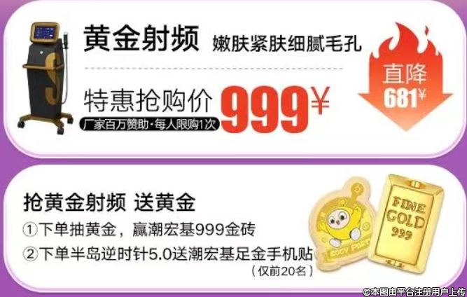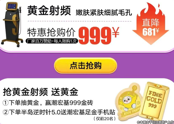 下單黃金射頻999元可抽取潮宏基999金磚!