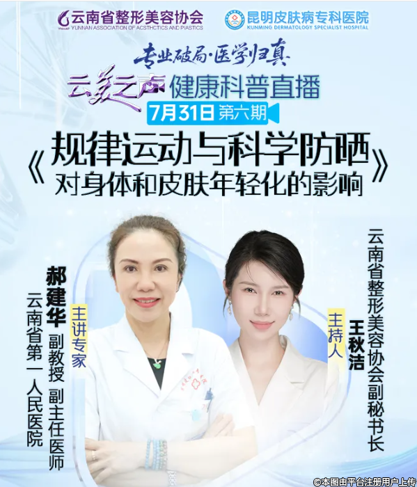 “云美之聲”第六期7月31日開播!云南省第一人民醫(yī)院郝建華教授解讀「運(yùn)動(dòng)+防曬」對(duì)皮膚年輕化的影響,鎖定直播get干貨