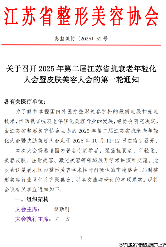 關(guān)于召開(kāi)2025年第二屆江蘇省抗衰老年輕化大會(huì)暨皮膚美容大會(huì)的第一輪通知