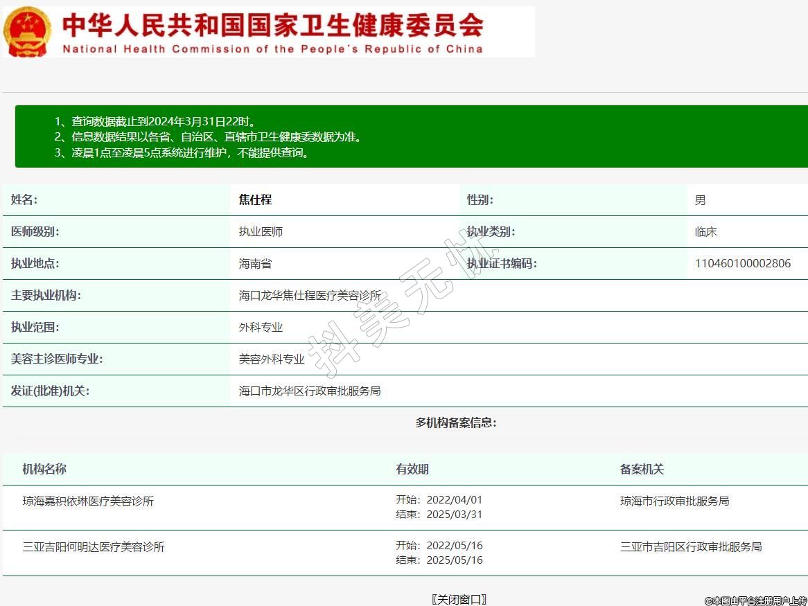主要執(zhí)業(yè)機(jī)構(gòu):海口龍華焦仕程醫(yī)療美容診所