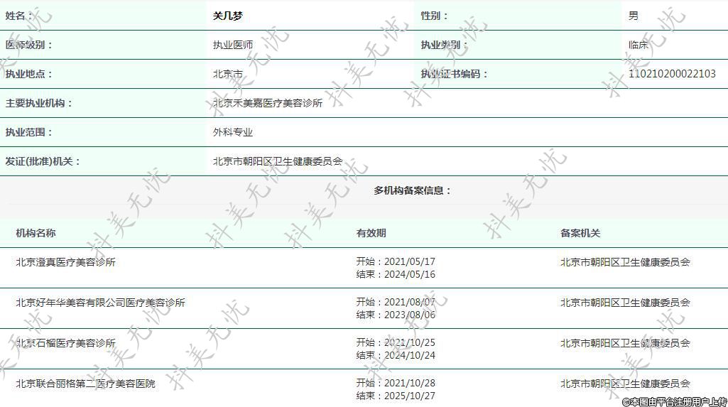 主要執(zhí)業(yè)機構:北京禾美嘉醫(yī)療美容診所