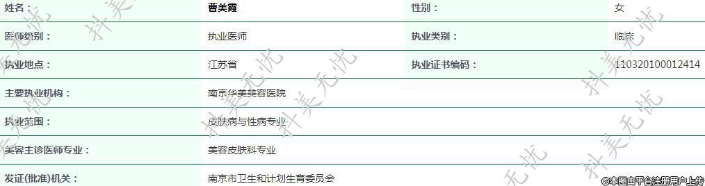 主要執(zhí)業(yè)機(jī)構(gòu):南京華美美容醫(yī)院