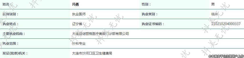 主要執(zhí)業(yè)機(jī)構(gòu):大連愛德麗格醫(yī)療美容門診部有限公司