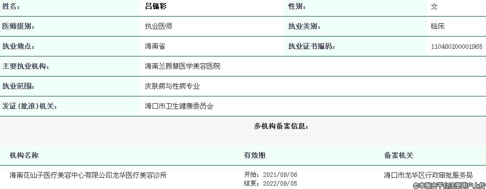 主要執(zhí)業(yè)機構(gòu):海南蘭顏慧醫(yī)學美容醫(yī)院