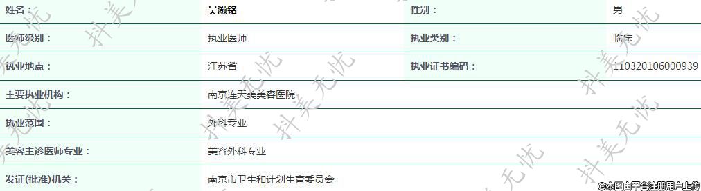 主要執(zhí)業(yè)機(jī)構(gòu):南京連天美美容醫(yī)院