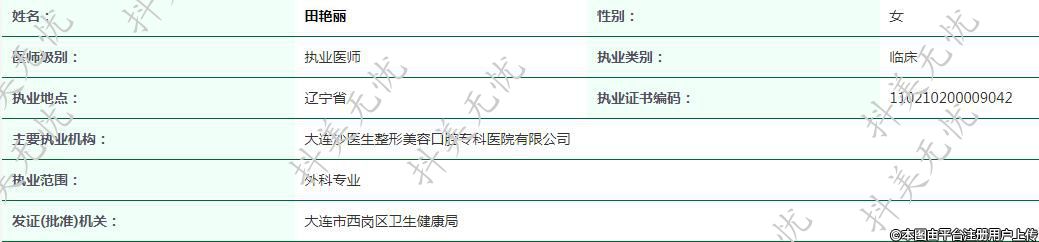 主要執(zhí)業(yè)機(jī)構(gòu):大連沙醫(yī)生整形美容口腔??漆t(yī)院有限公司