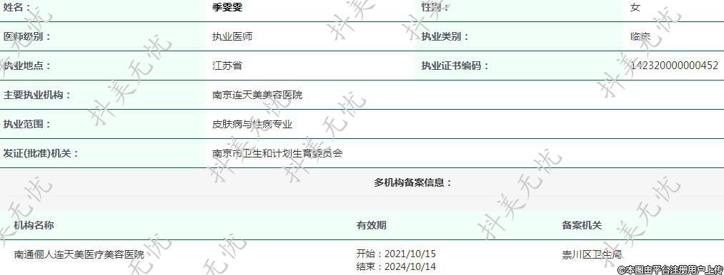 主要執(zhí)業(yè)機(jī)構(gòu):南京連天美美容醫(yī)院