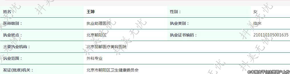 主要執(zhí)業(yè)機(jī)構(gòu):北京麗都醫(yī)療美容醫(yī)院
