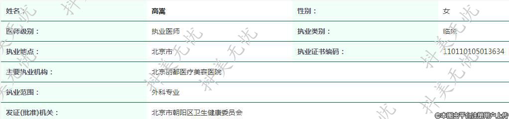 主要執(zhí)業(yè)機構(gòu):北京麗都醫(yī)療美容醫(yī)院