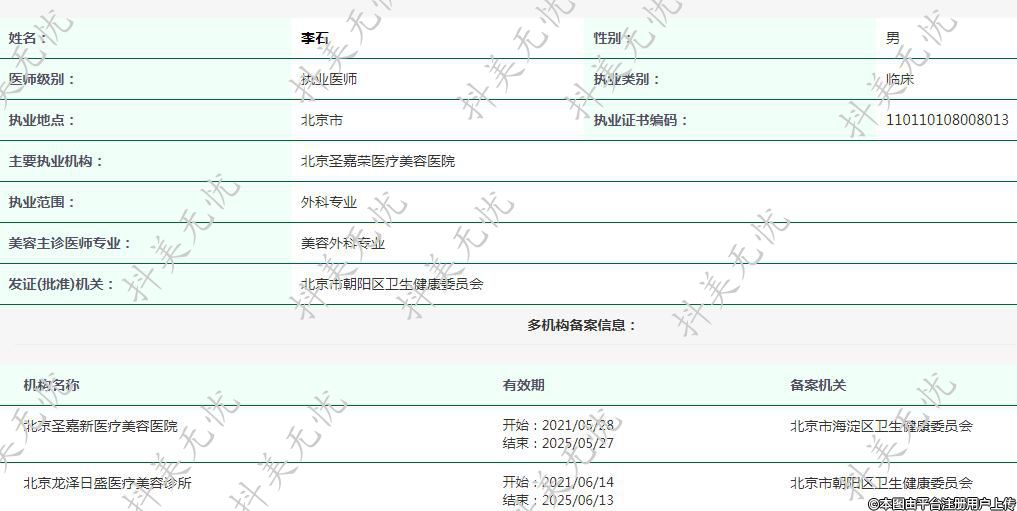 主要執(zhí)業(yè)機構(gòu):北京圣嘉榮醫(yī)療美容醫(yī)院