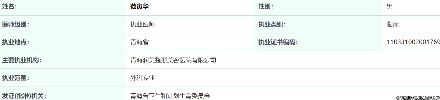 主要執(zhí)業(yè)機(jī)構(gòu):青海潤美整形美容醫(yī)院有限公司