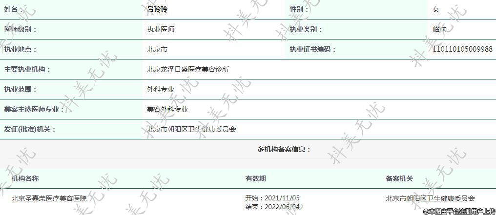 主要執(zhí)業(yè)機構(gòu):北京龍澤日盛醫(yī)療美容診所