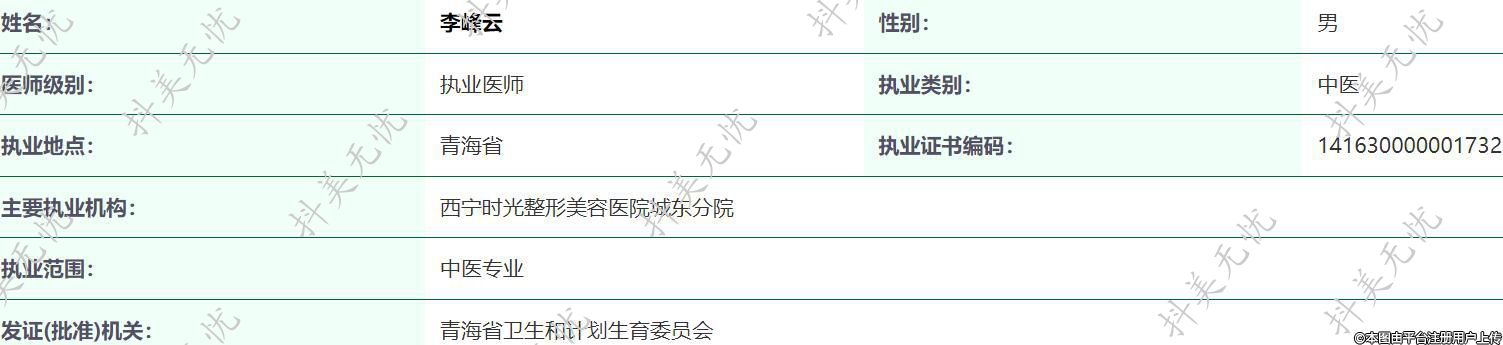 西寧時(shí)光醫(yī)療美容執(zhí)業(yè)醫(yī)師 -