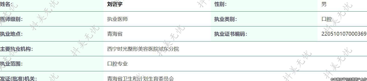 主要執(zhí)業(yè)機構(gòu):西寧時光整形美容醫(yī)院城東分院