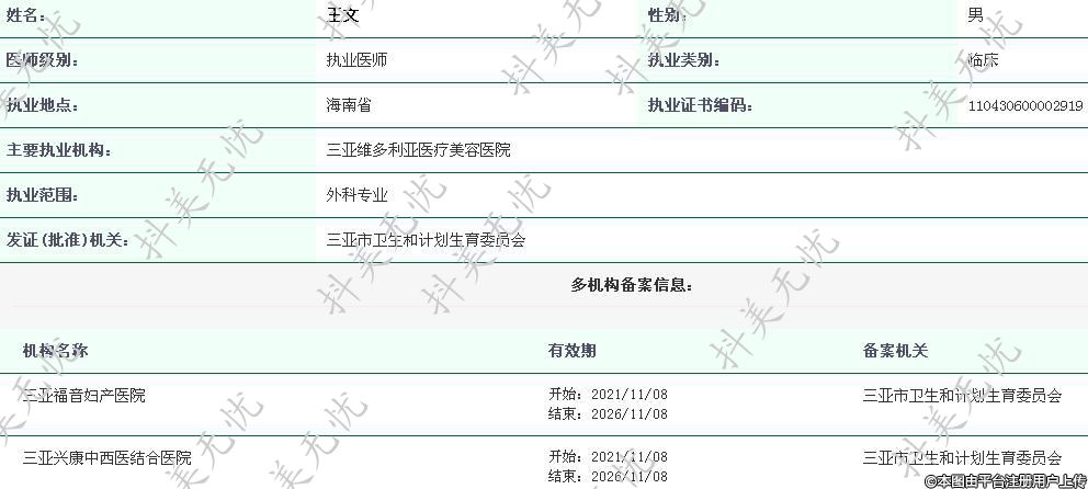 主要執(zhí)業(yè)機(jī)構(gòu):三亞維多利亞醫(yī)療美容醫(yī)院