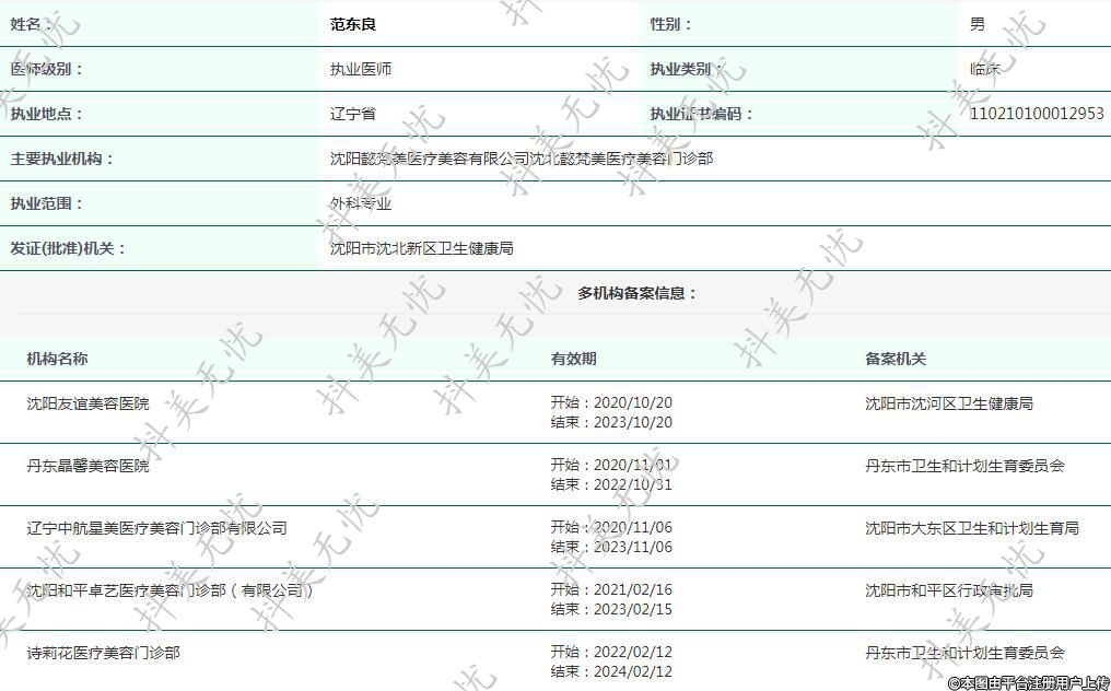 主要執(zhí)業(yè)機(jī)構(gòu):沈陽懿梵美醫(yī)療美容有限公司沈北懿梵美醫(yī)療美容門診部