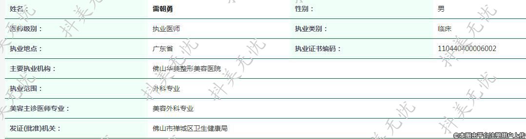 主要執(zhí)業(yè)機(jī)構(gòu):佛山華美整形美容醫(yī)院