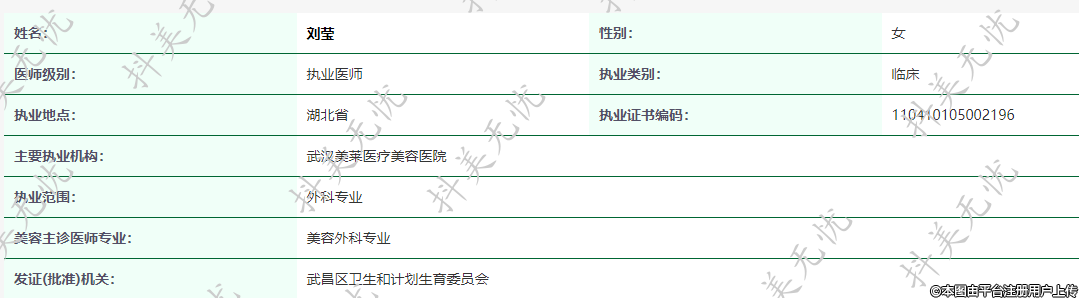主要執(zhí)業(yè)機構(gòu):武漢美萊醫(yī)療美容醫(yī)院