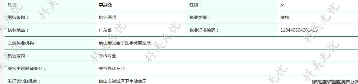 主要執(zhí)業(yè)機構(gòu):佛山曙光金子醫(yī)學美容醫(yī)院
