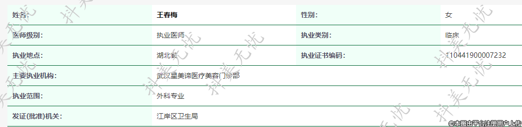 主要執(zhí)業(yè)機構(gòu):武漢星美諦醫(yī)療美容門診部
