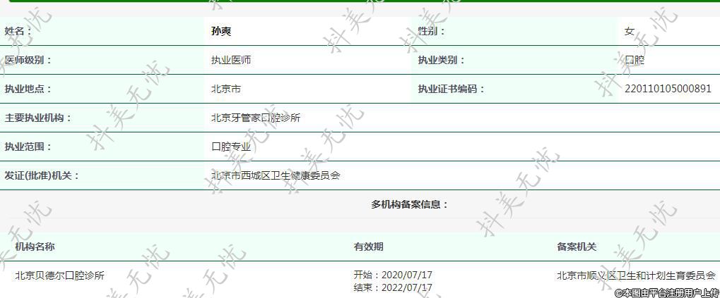 主要執(zhí)業(yè)機(jī)構(gòu):北京牙管家口腔診所
