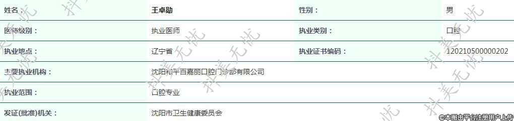 主要執(zhí)業(yè)機(jī)構(gòu):沈陽和平百嘉麗口腔門診部有限公司