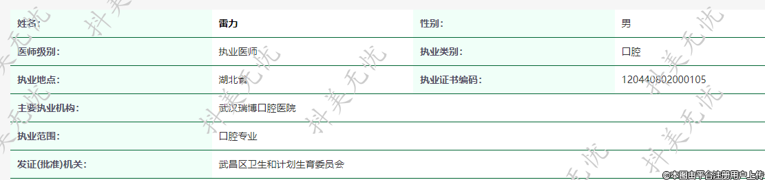 主要執(zhí)業(yè)機(jī)構(gòu):武漢瑞博口腔醫(yī)院