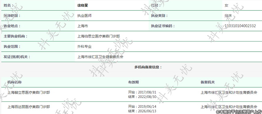 主要執(zhí)業(yè)機(jī)構(gòu):上海伯思立醫(yī)療美容門診部