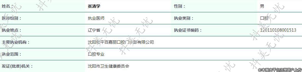 主要執(zhí)業(yè)機(jī)構(gòu):沈陽和平百嘉麗口腔門診部有限公司