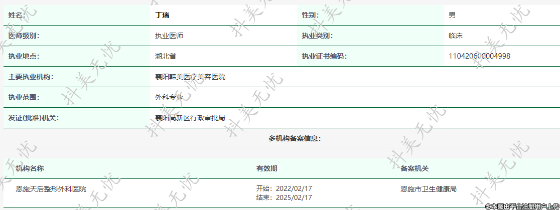 主要執(zhí)業(yè)機(jī)構(gòu):襄陽韓美醫(yī)療美容醫(yī)院