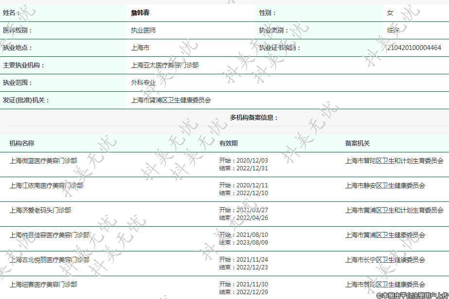主要執(zhí)業(yè)機(jī)構(gòu):上海亞太醫(yī)療美容門診部