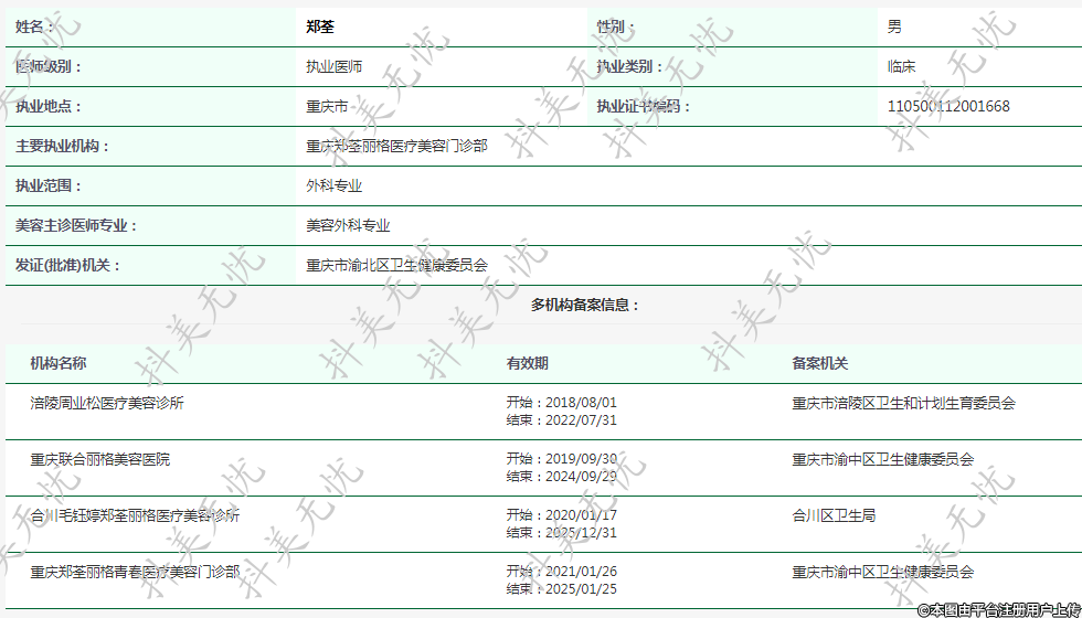 主要執(zhí)業(yè)機(jī)構(gòu):重慶鄭荃麗格醫(yī)療美容門診部