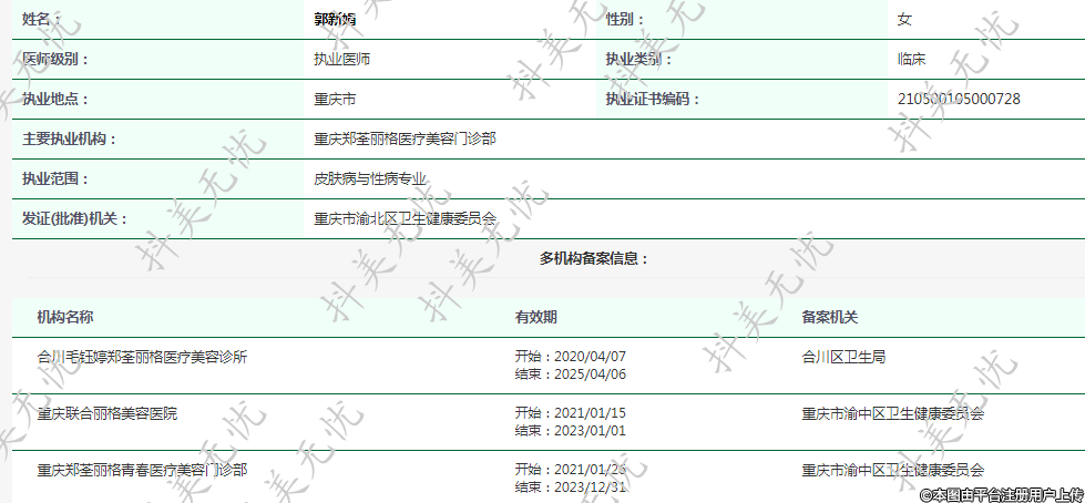 主要執(zhí)業(yè)機構:重慶鄭荃麗格醫(yī)療美容門診部