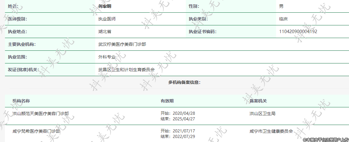 主要執(zhí)業(yè)機(jī)構(gòu):武漢檸美醫(yī)療美容門診部