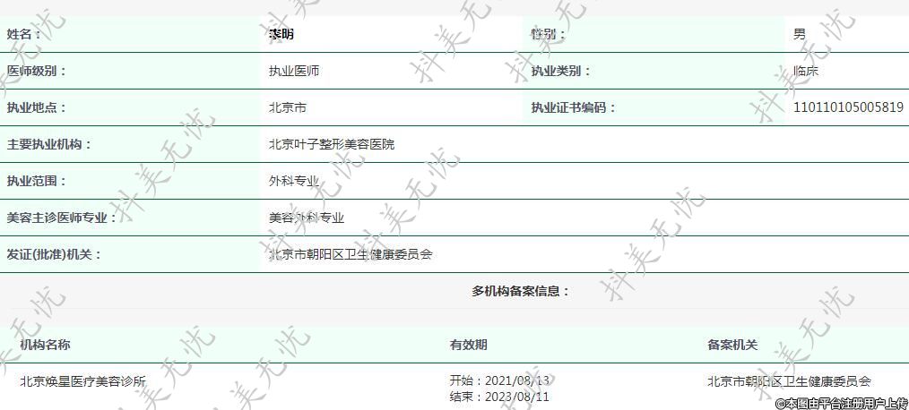 主要執(zhí)業(yè)機構(gòu):北京葉子整形美容醫(yī)院