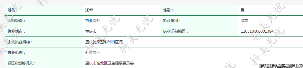 主要執(zhí)業(yè)機(jī)構(gòu):重慶星榮整形外科醫(yī)院