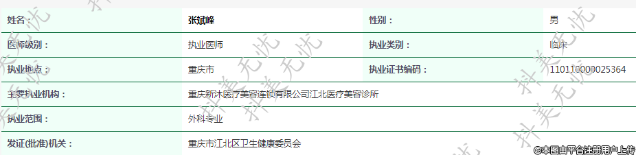 主要執(zhí)業(yè)機構:重慶新沐醫(yī)療美容連鎖有限公司江北醫(yī)療美容診所