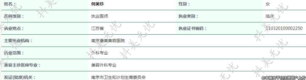 主要執(zhí)業(yè)機構(gòu):南京康美美容醫(yī)院